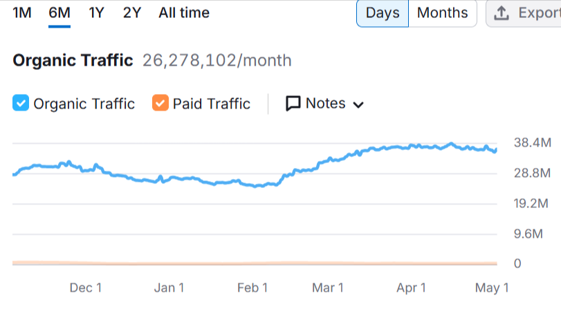 Organic Traffic: Increased by 38%, from 26.3M to 36.6M monthly visitors.
