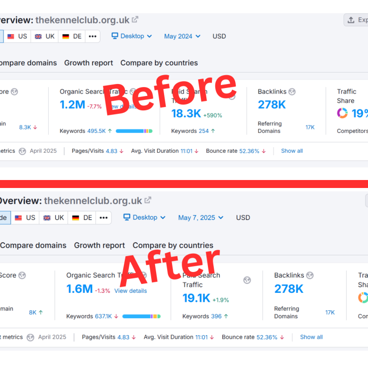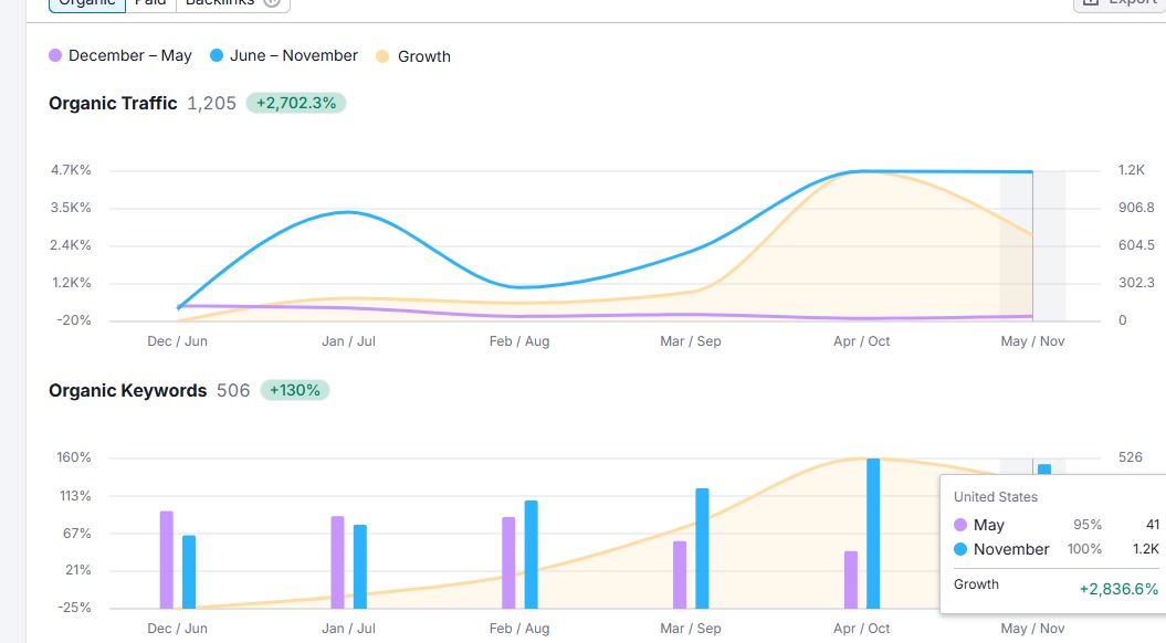 Traffic Growth: From under 2K to 5,700 visitors/month.