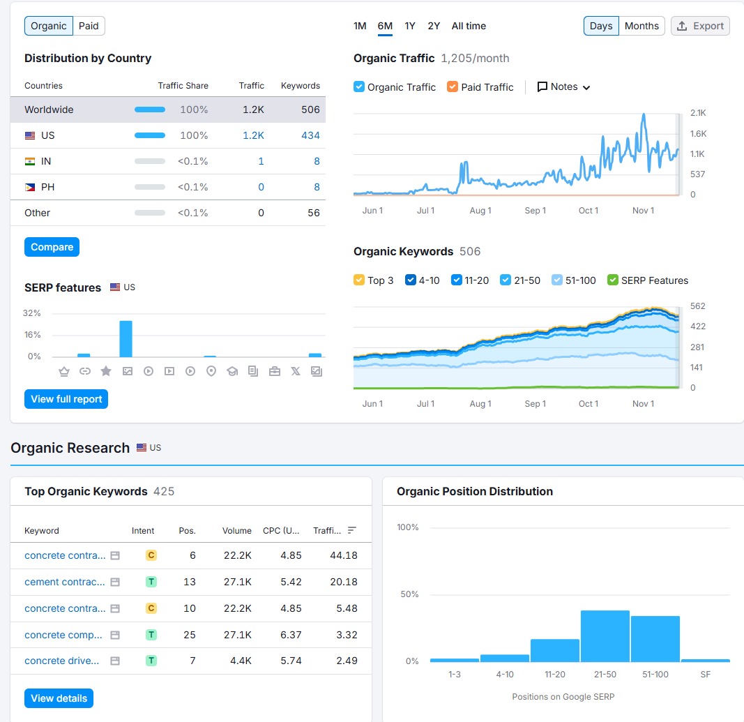 A year ago, HoustonRoofingOnline.com had low traffic and weak rankings. Today, it attracts 5,700 monthly visitors and ranks for 2,166 keywords through strategic SEO improvements.